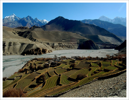 Ba-Yul, le pays caché du Dolpo, fut formé par des fermiers Rokpa et Drokpa, nomades venus du Tibet au 10th siècle. C’est un des lieux habités les plus hauts du monde, avec des villages-forteresses éparpillés et des monastères nichés au milieu de montagnes d’une beauté ascétique. Bien que faisant partie du Népal, le Dolpo demeure fermement lié au Tibet culturellement et économiquement. Les habitants de cette région désolée sont coupés de leurs voisins du sud par des cols couverts de neige une grande partie de l’année. C’est une région difficile à traverser et très fascinante.